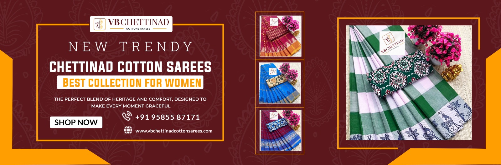 The Chettinadu Kandangi saree is native to the Chettinad region and has been in existence for over 150 years. Kandangi saris were traditionally made of silk. Later, cotton was used for convenience. The saris are known for its checkered pattern using multiple colors with thick contrasting borders.